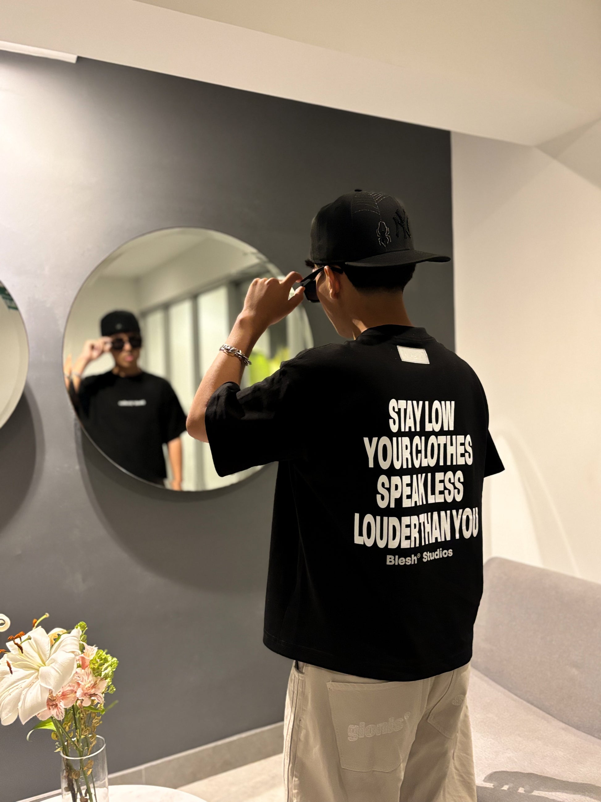 Confeccionado en 100% algodón peinado premium, suave, resistente y con una caída limpia. Corte boxy: ancho, estructurado y con caida pesada